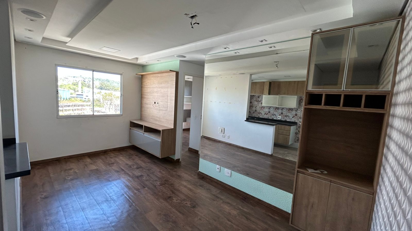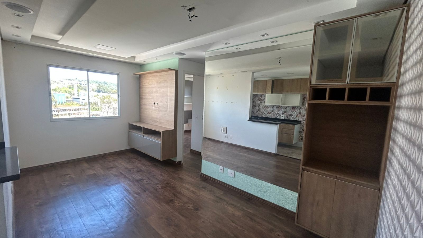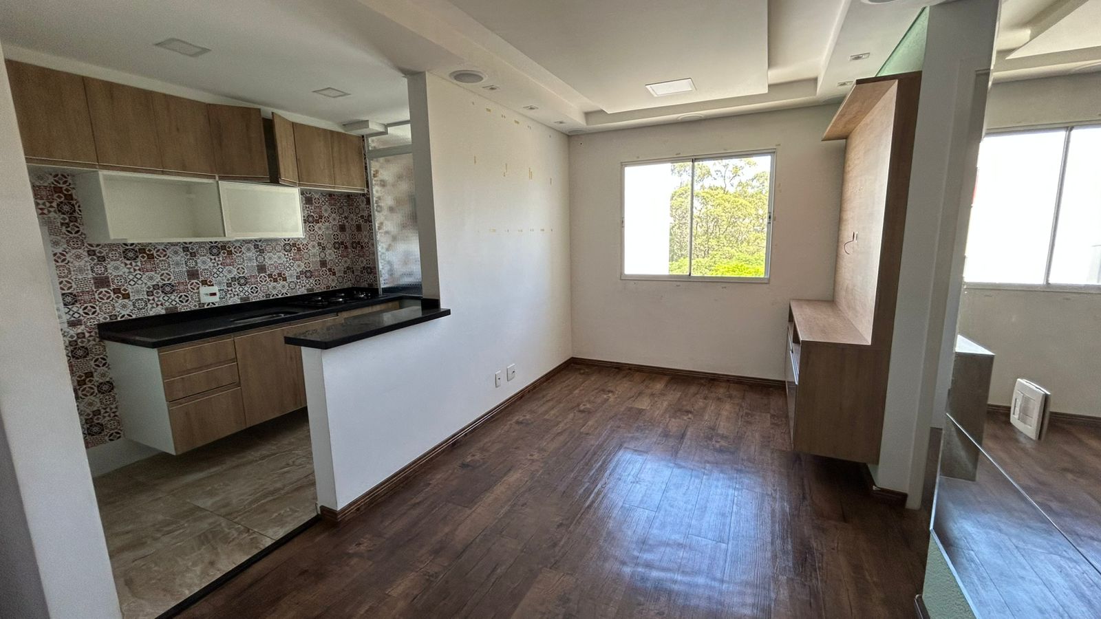 02 Dormitórios com armários planejados/ Sala para dois ambientes (estar e jantar),